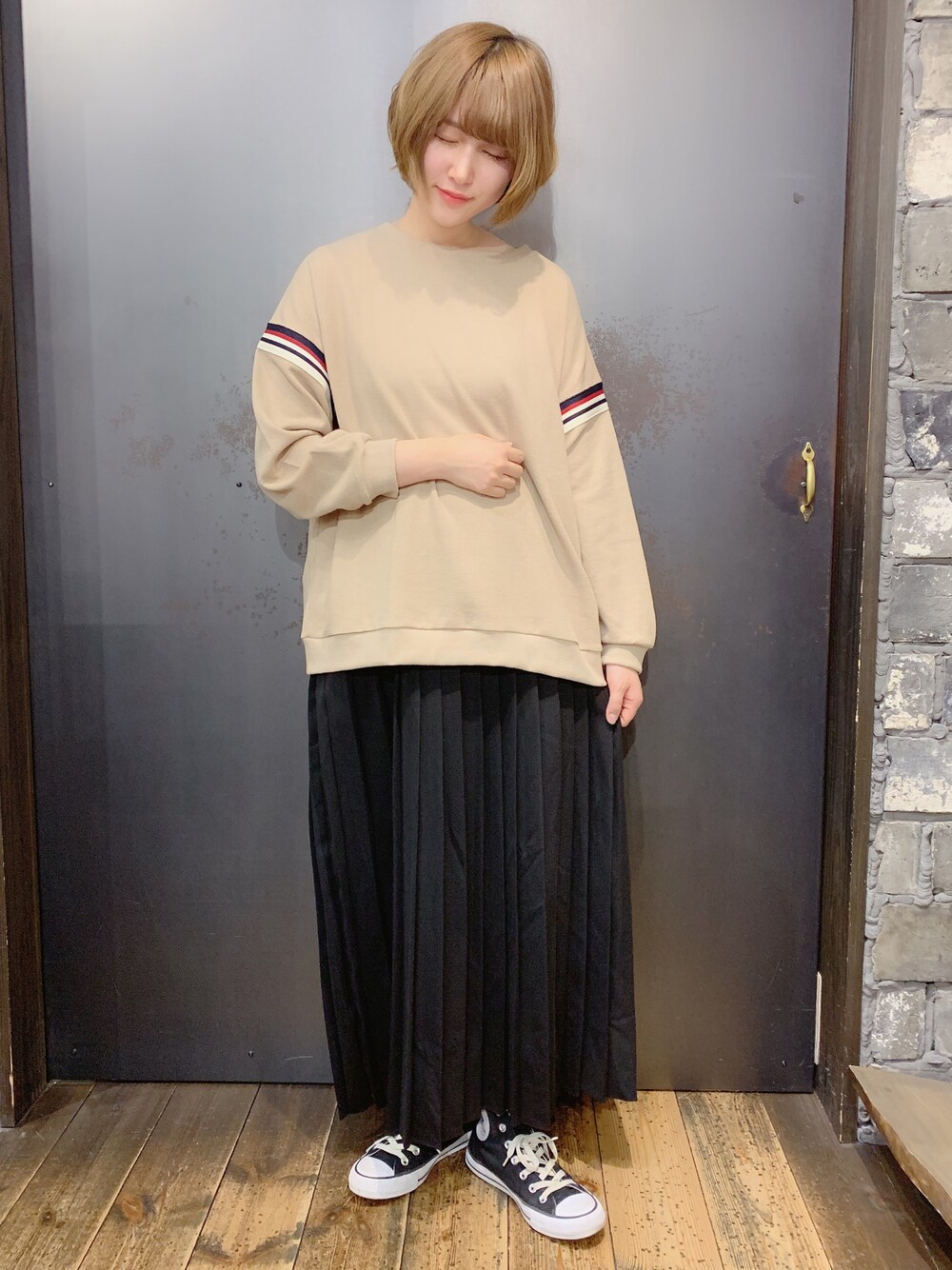 閲覧ありがとうございます😊 今日は以前あげたジャンスカの 着まわしコーデです💗 ジャンスカの肩紐を中にすれば 長めのプリーツスカートに…!🤔 店頭でも人気なワッフルプルオーバーと 合わせてみました🙌✨ (在庫は各店舗にお問い合わせください)