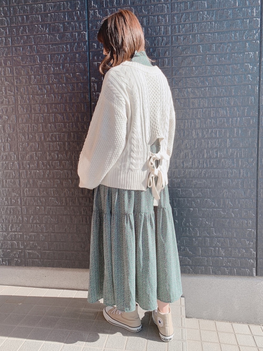 花柄ワンピは ニットを重ねてもかわいいです🌸