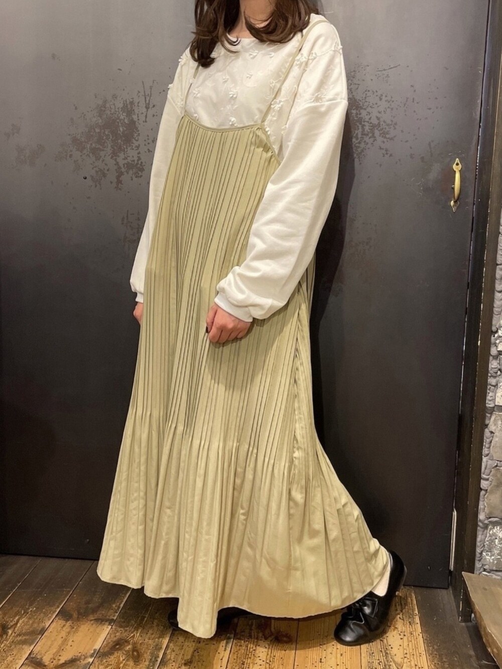 あさぽん(アール・ピー・エス本部)のワンピース「スパンブロードプリーツキャミワンピース」を使ったコーディネート