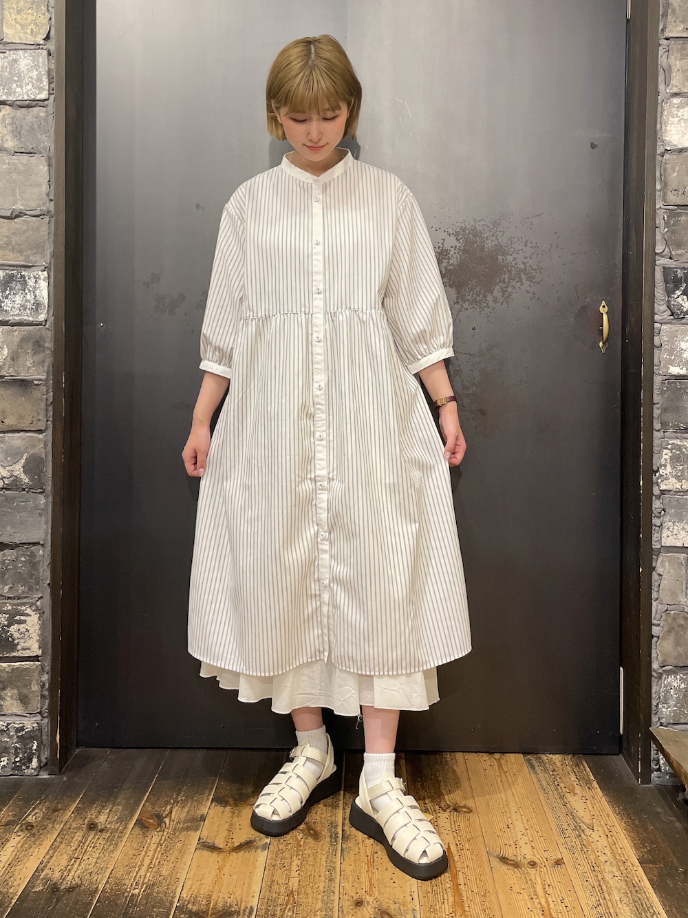 あさぽんのシャツワンピース「バンドカラー7分袖シャツワンピース」を使ったコーディネート