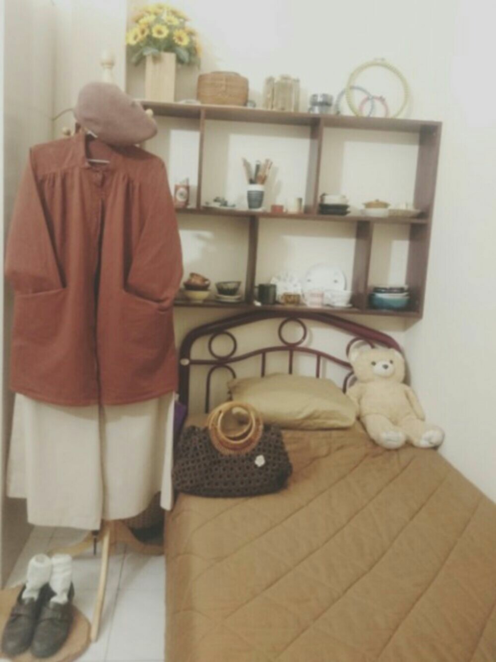 ブラウン系のシャツ/ブラウスを着用したレディースの冬コーディネートの1枚目の写真