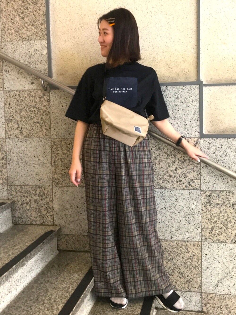 🌼チェックパンツ🌼 ダーク系カラーでまとめました! 晩夏のTシャツは早くもお値下げになっていますので、ぜひご来店下さい☺️