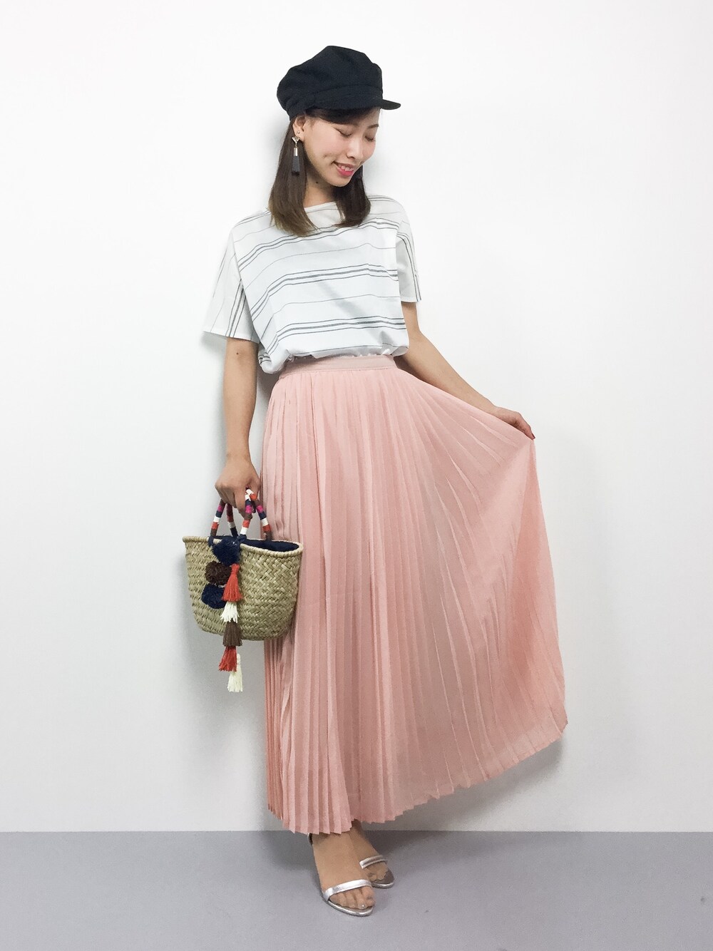 着用コーデ:3件KIIのトートバッグ「オリジナルポンポンカゴBAG【niko and ...】」を使ったコーディネート