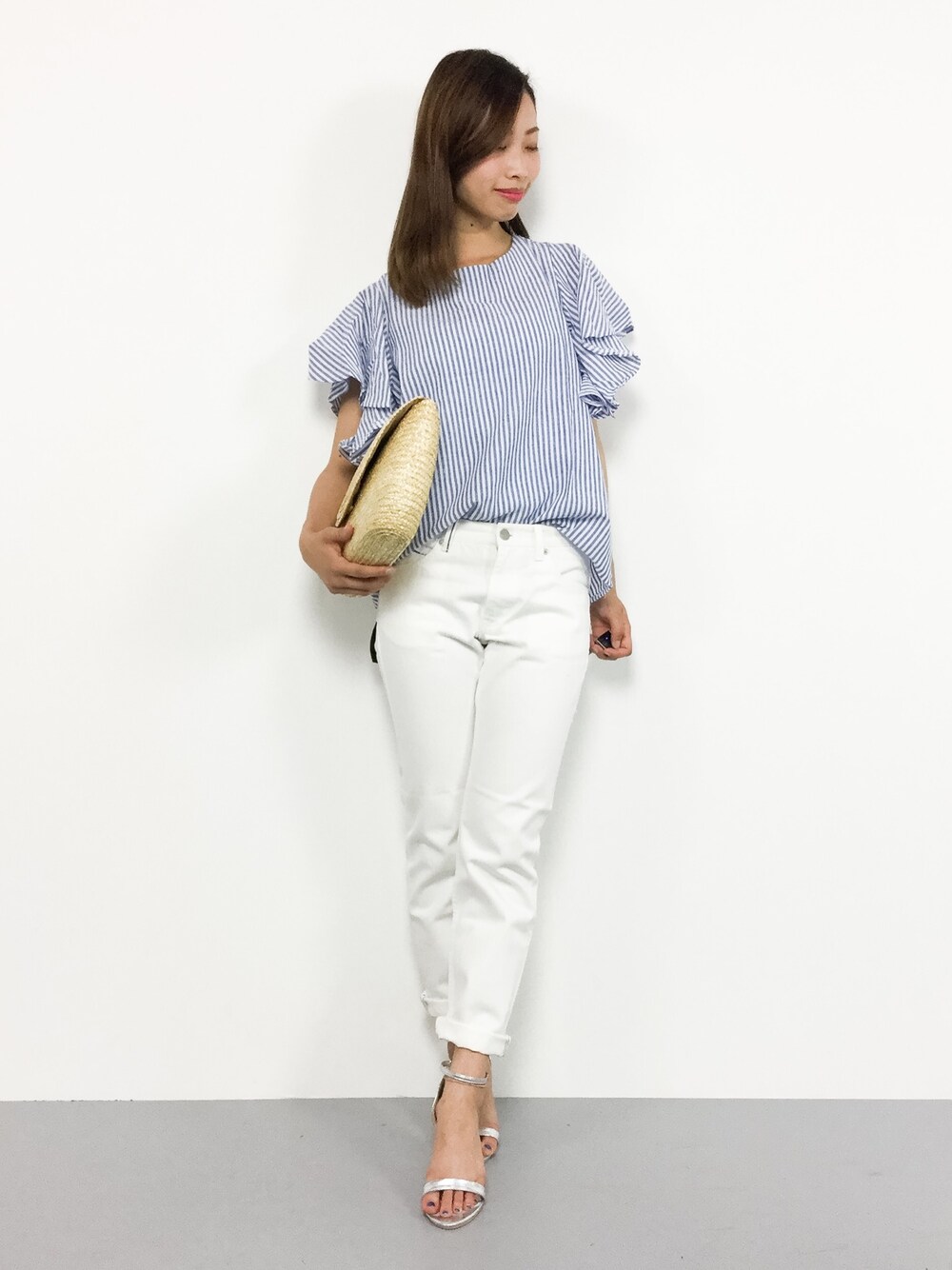 KIIのシャツ/ブラウス「ストライプ後ろリボントップス」を使ったコーディネート