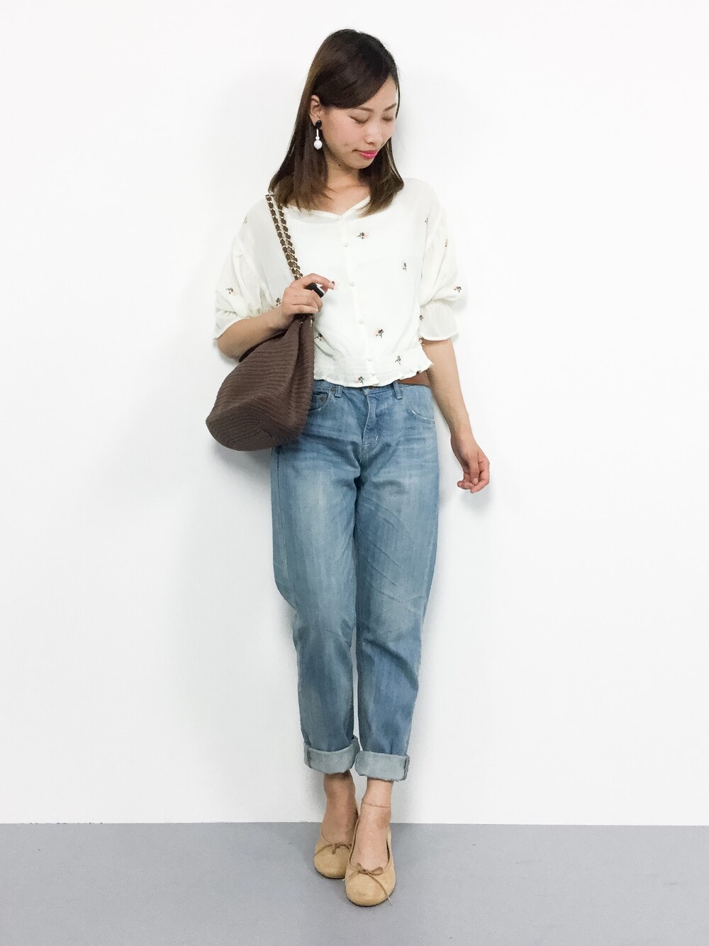 KIIのシャツ/ブラウス「ふさふさ刺繍2WAYBL」を使ったコーディネート