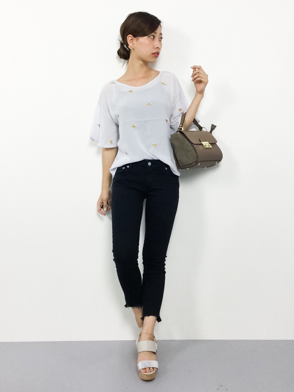 KIIのシャツ/ブラウス「楊柳シフォン立体刺繍ラッフルブラウス」を使ったコーディネート