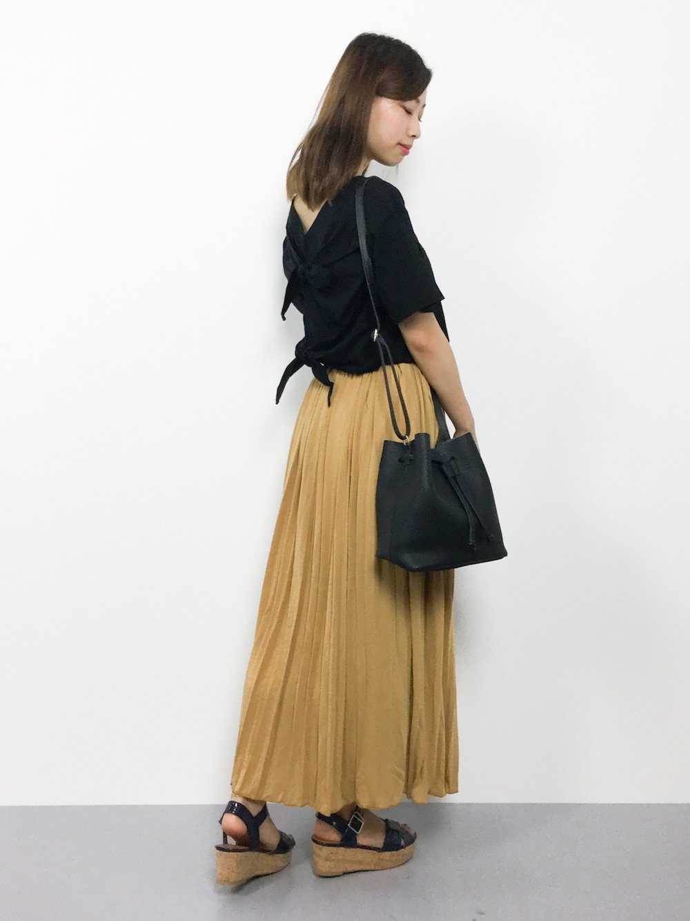 ゆったりラフコーデ◎ ウエストがゴムで、楽に穿ける プリーツスカートは3229円と、 プチプラ価格でオススメです^^ バックスタイルもかわいいロゴTは ただいまセール中ですよ〜♪