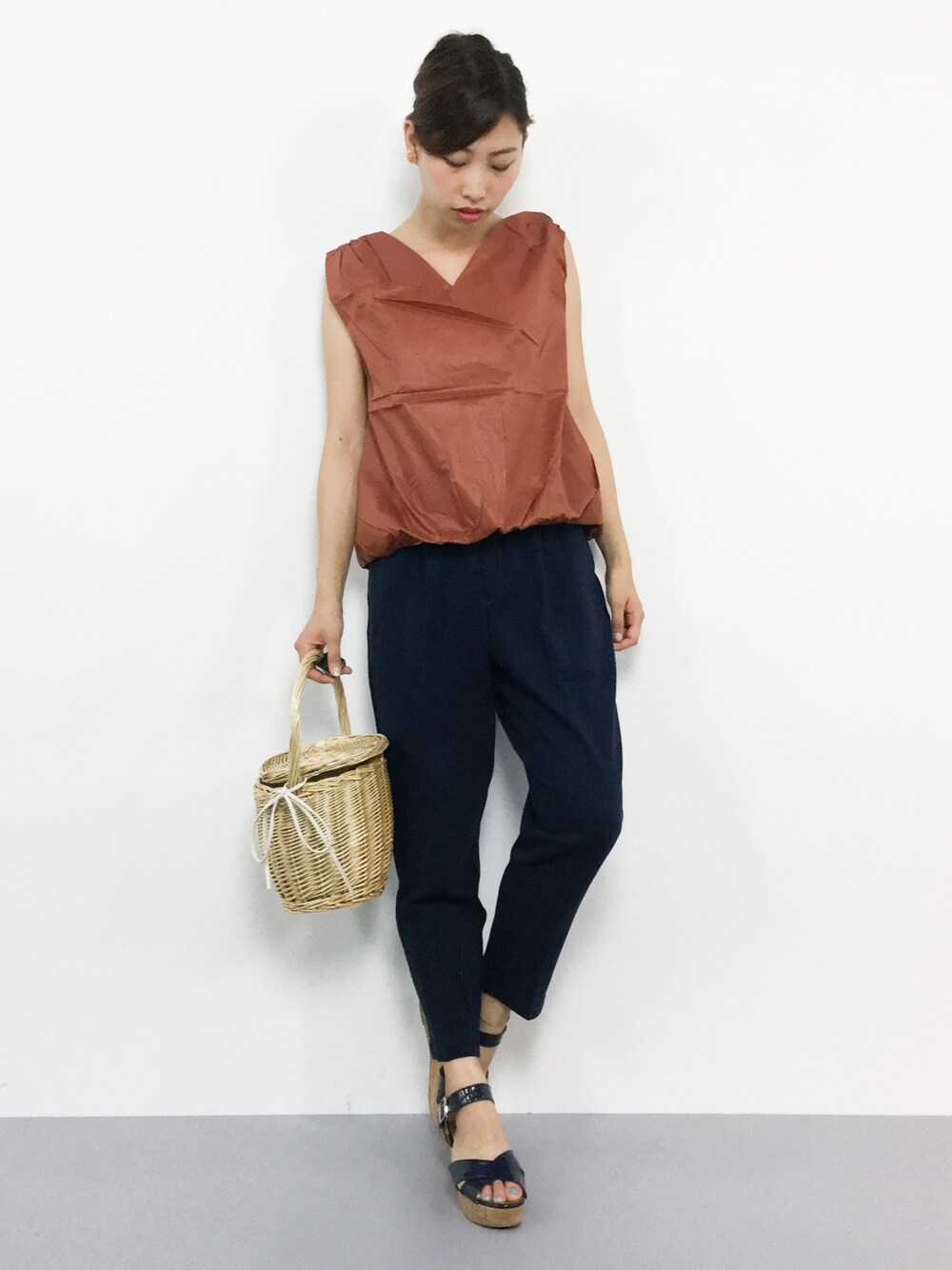 KIIのかごバッグ「ラタン素材バスケットカゴバッグ」を使ったコーディネート
