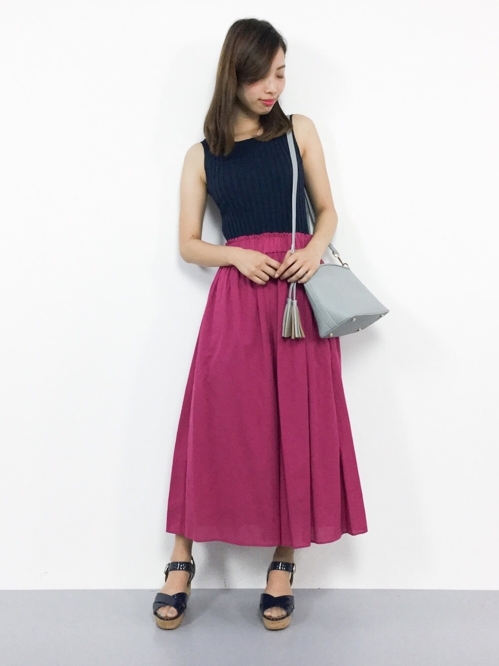 オトナデートコーデ◎ きちんと感のあるニットは オンオフで活用できるアイテム♪ ショルダーバッグは軽くて、 口が大きく開くので使いやすそうですよ(^O^)