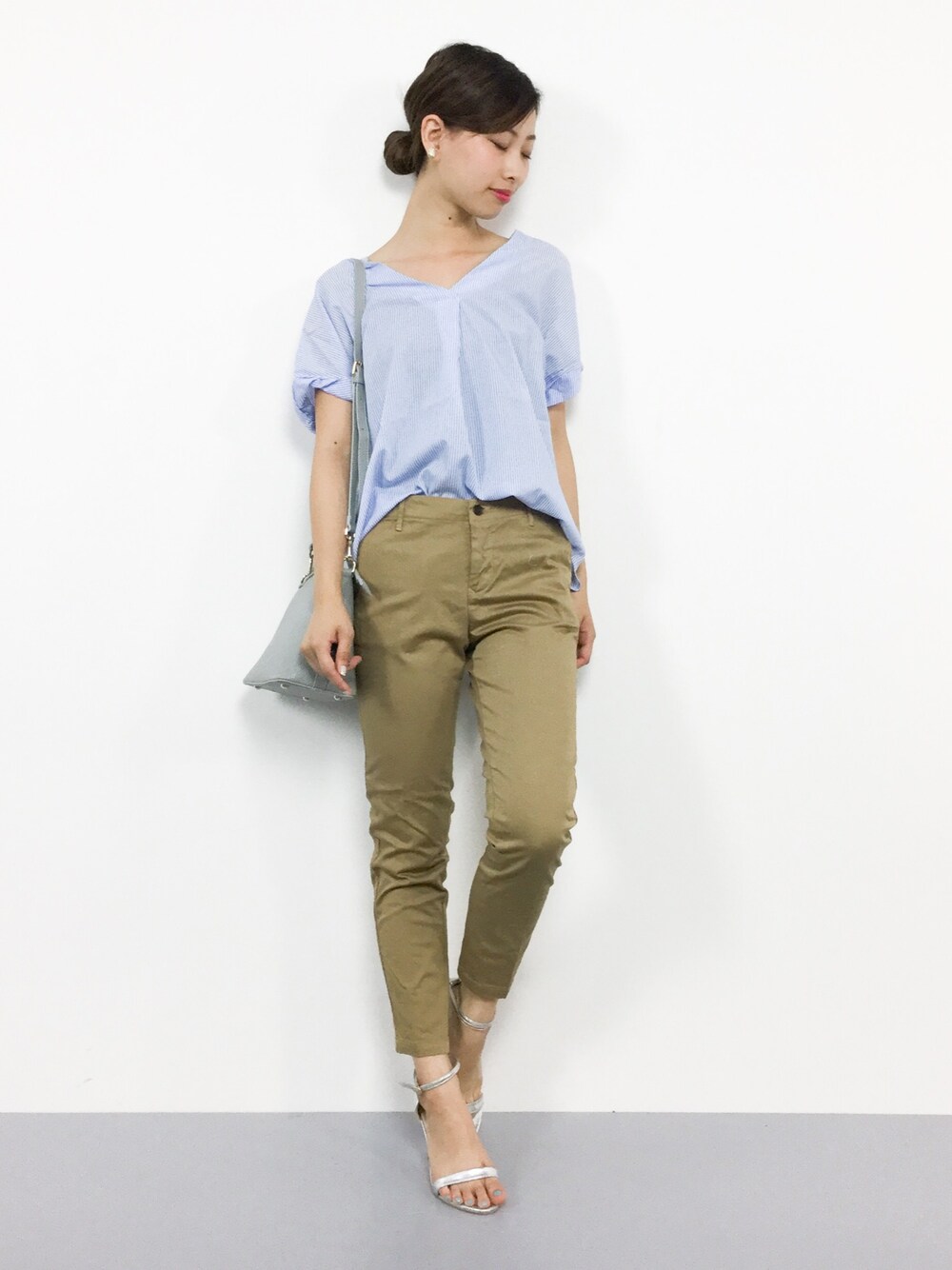 きれいめカジュアルコーデ◎ シンプルはブラウスはデイリーに 着回せるアイテム♪ バックスタイルがレースアップに なっていて女性らしいです(^O^) ただいまセール中♪お安くなってまーす◎