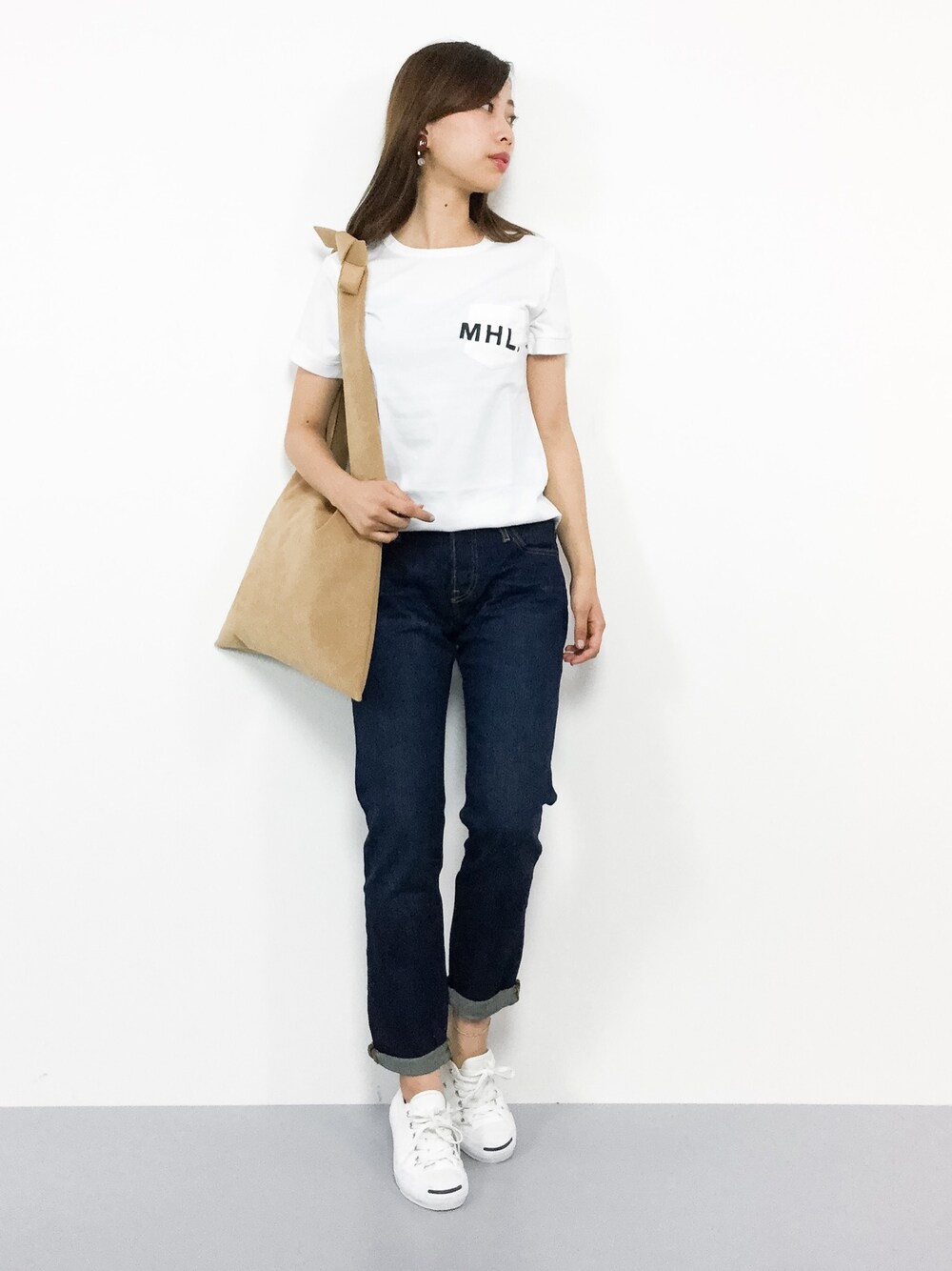 カジュアルコーデ◎ カットソー×デニムのシンプルスタイル○ リーバイスのテーパードデニムは セール中でお安くなってます♪