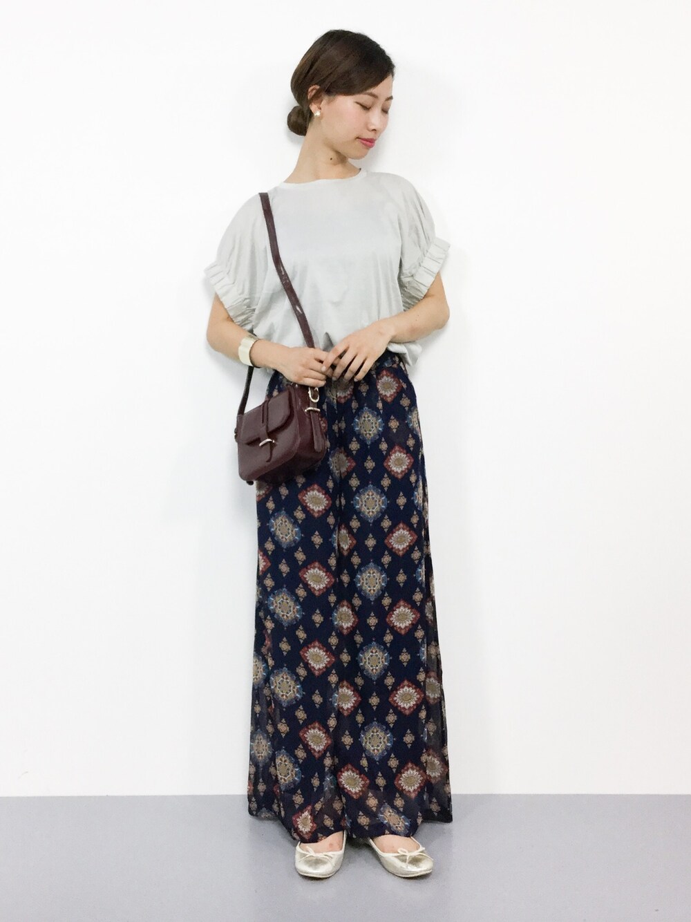 ゆるコーデ◎ ギャザースリーブのカットソーは ゆったりとしたシルエットで 着やすいです(^O^) てろーんとした素材のパンツは プチプラ価格でおすすめアイテム♪ ぜひチェックしてみて下さい(*゚▽゚*)