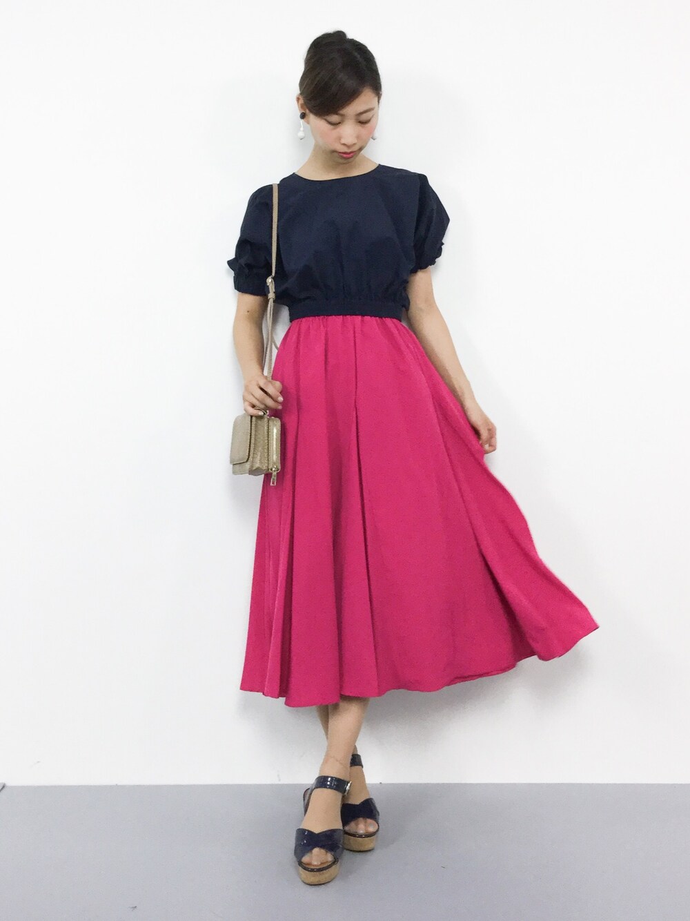 オトナガーリーコーデ◎ 裾に向かって広がるシルエットが 女性らしいカラースカート♪ 2149円とかなりプチプラで、 オススメです^^
