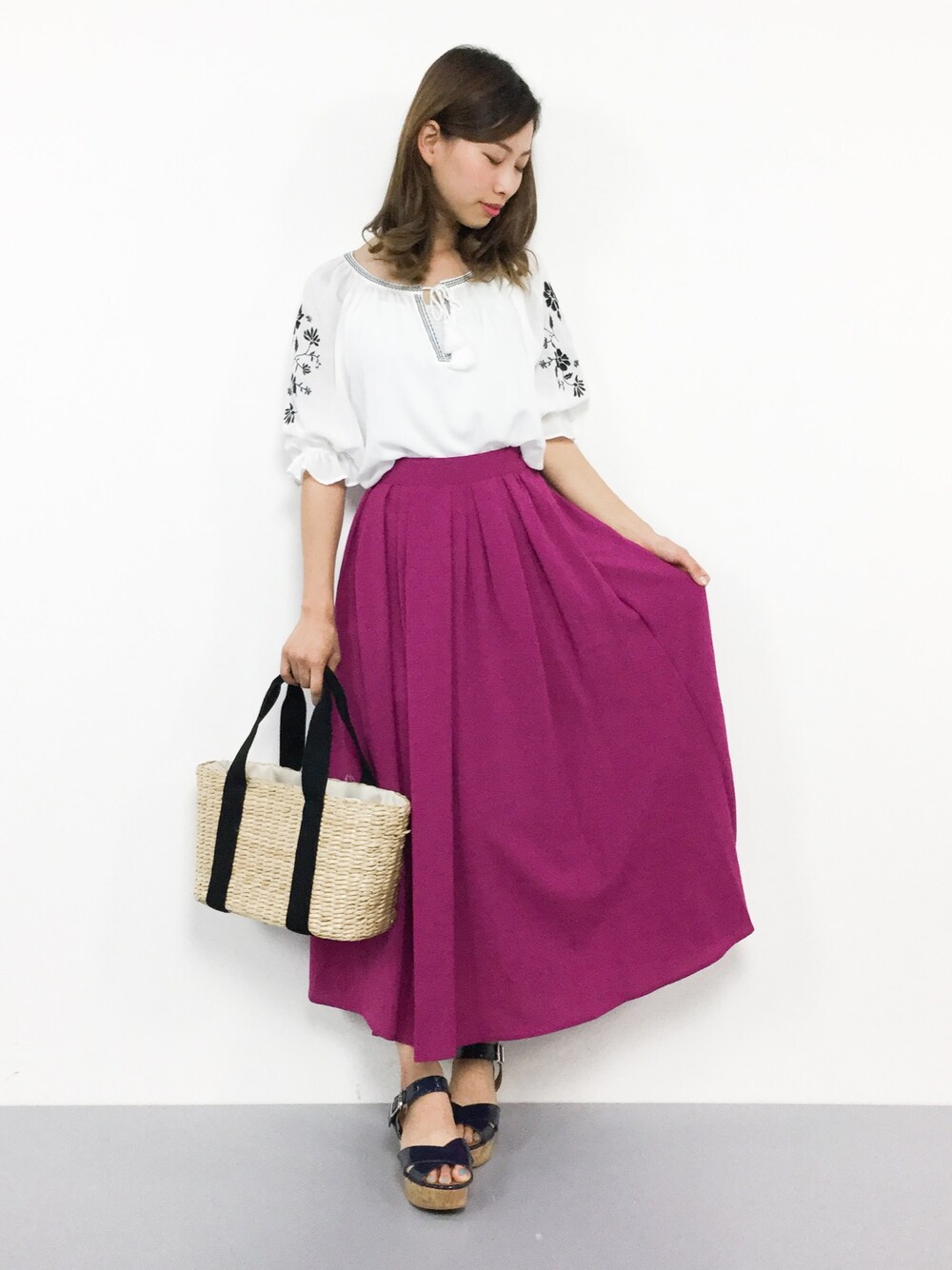 KIIのスカート「キレイ色ロングギャザースカートB」を使ったコーディネート