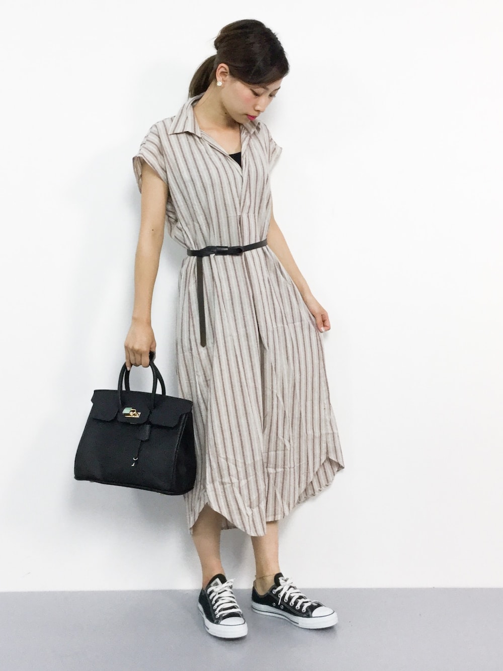 KIIのワンピース「ナチュラルストライプシャツワンピース」を使ったコーディネート