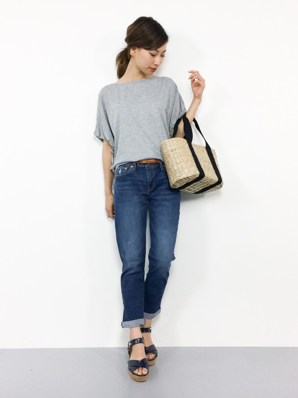 オトナラフコーデ◎ ゆったりしたシルエットのカットソーは ボトムスを選ばずに着ていただけます♪ デニムは柔らかくゆとりがあるので ラフに穿けます(^O^)