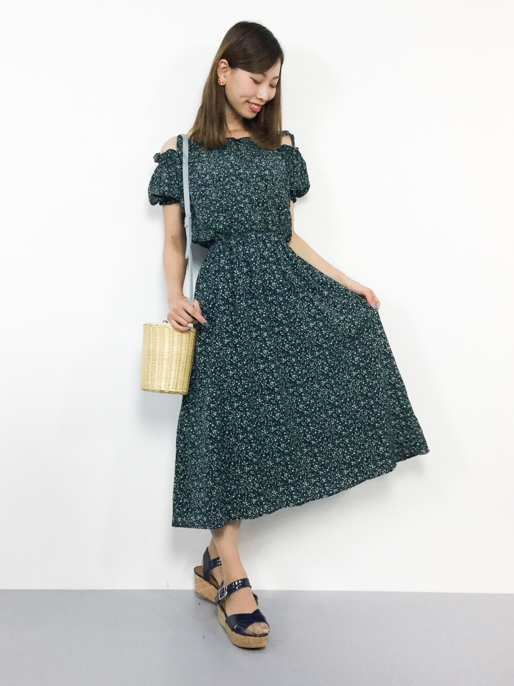 オフショルゆるワンピコーデ◎ ゆったりシルエットのワンピースは サンダルでカジュアルに♪ バレエシューズシューズでガーリーに 仕上げても可愛いですよ(^O^) オフショル×花柄で女性らしさ満点です♪