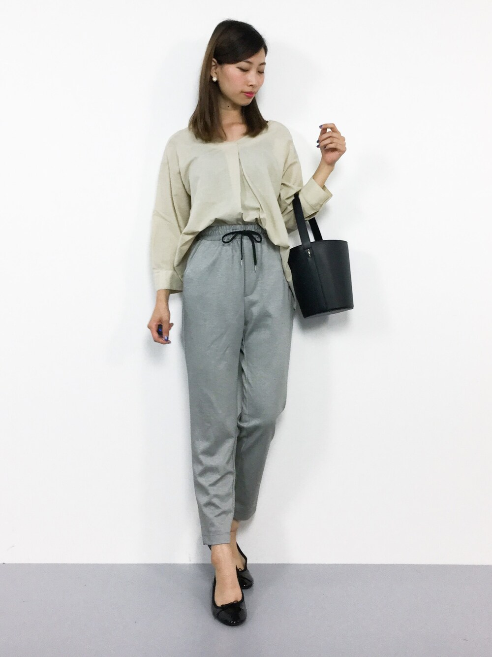オフィスカジュアルコーデ◎ オンオフに着回しが効くブラウスは 様々なシーンで活躍間違いなし♪ イージーパンツは柔らかく、 穿き心地ばっちりですよ♪