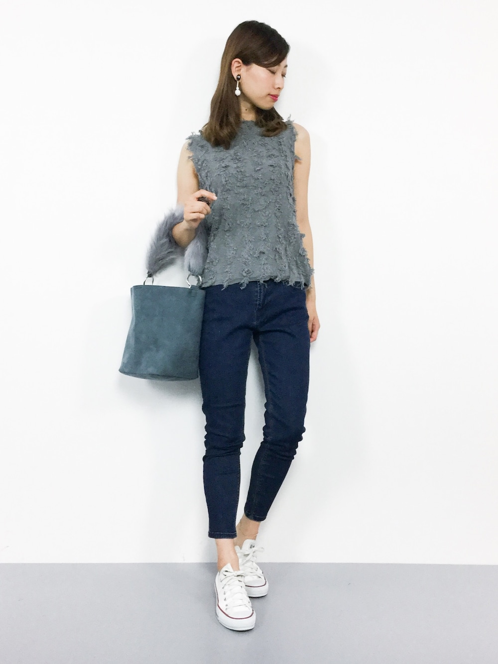 KIIのデニムパンツ「【7サイズ展開】プチプラデニムスキニーパンツ」を使ったコーディネート