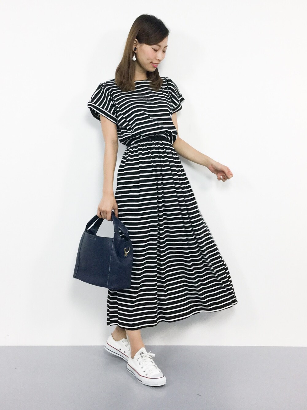 KIIのワンピース「リブボーダーロングワンピース」を使ったコーディネート