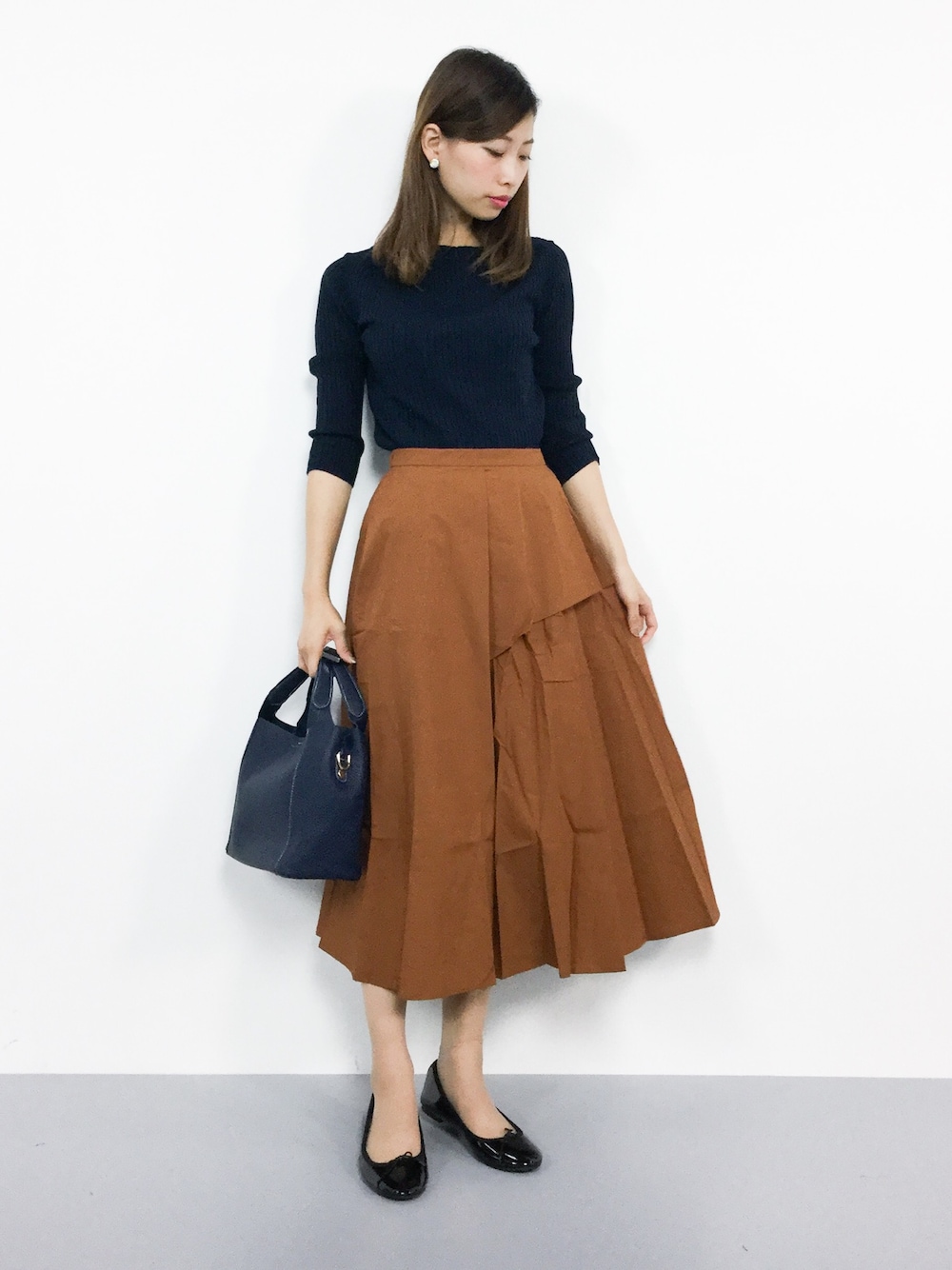 KIIのニット/セーター「リブボートネックセーター(7分袖)」を使ったコーディネート