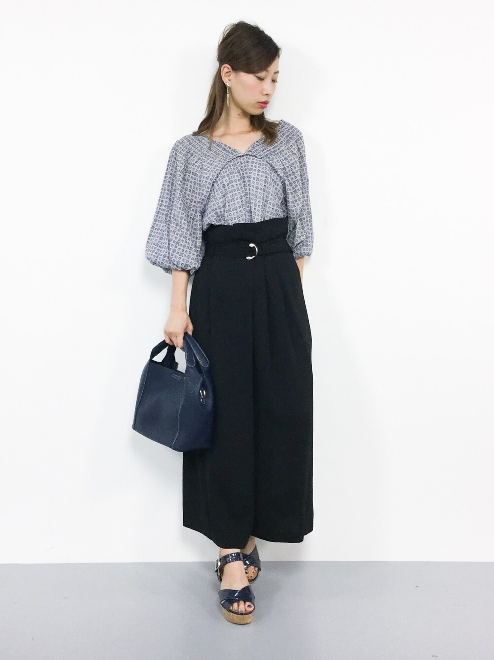 カジュアルラフコーデ◎ ゆったりしたシルエットのブラウスは ボトムスを選ばずに着ていただけます♪ ウエストがゴムなので着脱がラクチン♪ サラっとした柔らかな生地でゆったり穿けます(^O^)