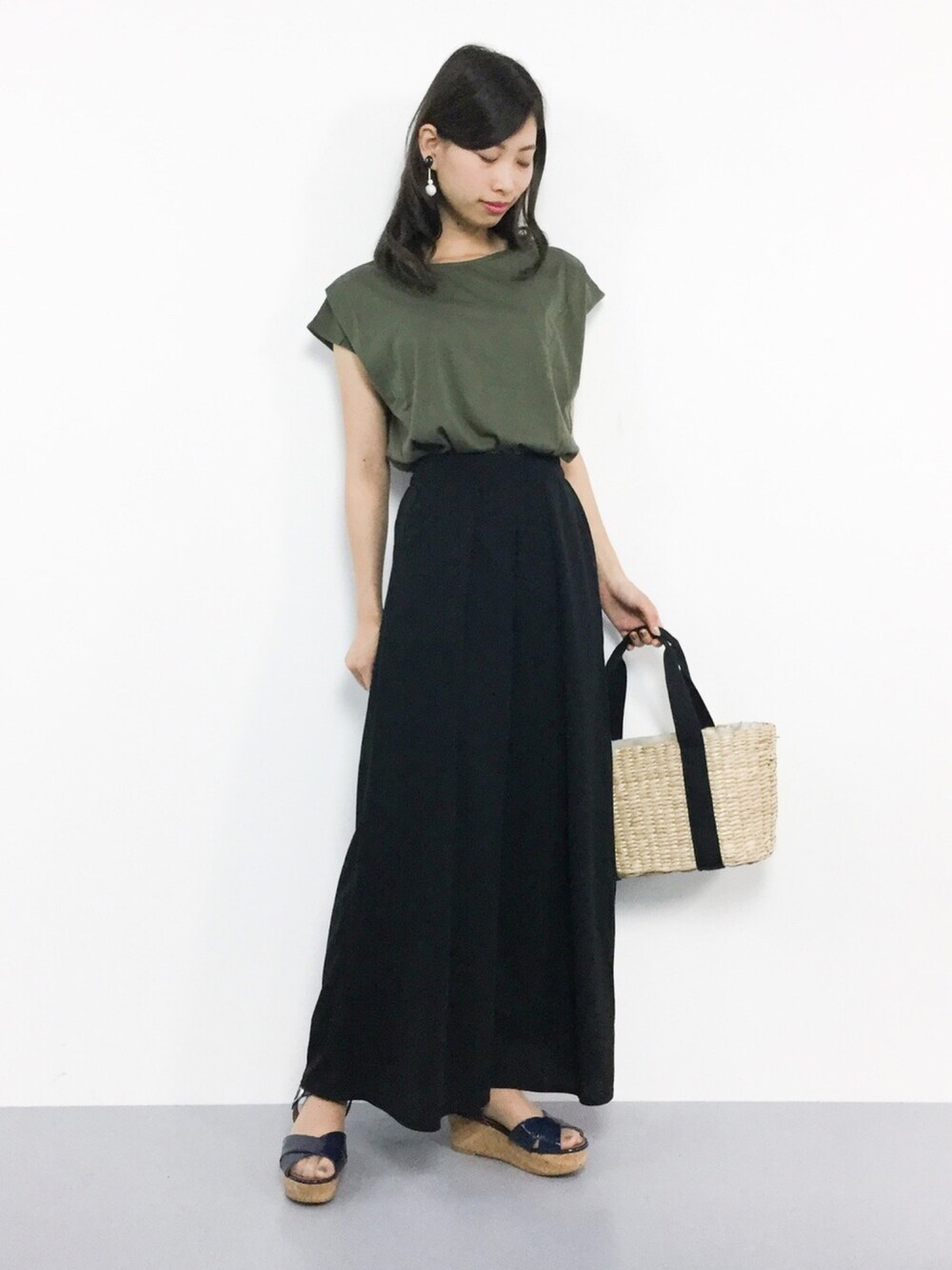 カジュアルラフコーデ◎ トップスはシンプルなアイテムなので ボトムスを選ばずに着られます♪ スカートは柔らかな生地で 秋も使える優秀アイテム(^O^) プチプラ価格でお財布にも優しい♪