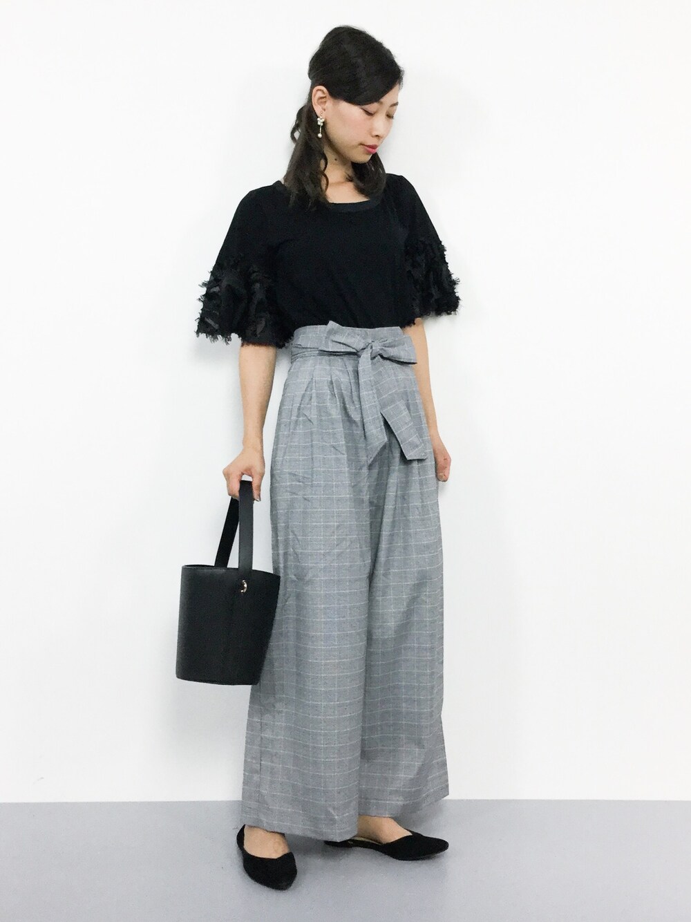 オトナカジュアルコーデ◎ 袖のシャギーが華やかで かわいいです(^O^) ワイドパンツはゆったりとした作りで 生地が柔らかく穿きやすいです(^O^)