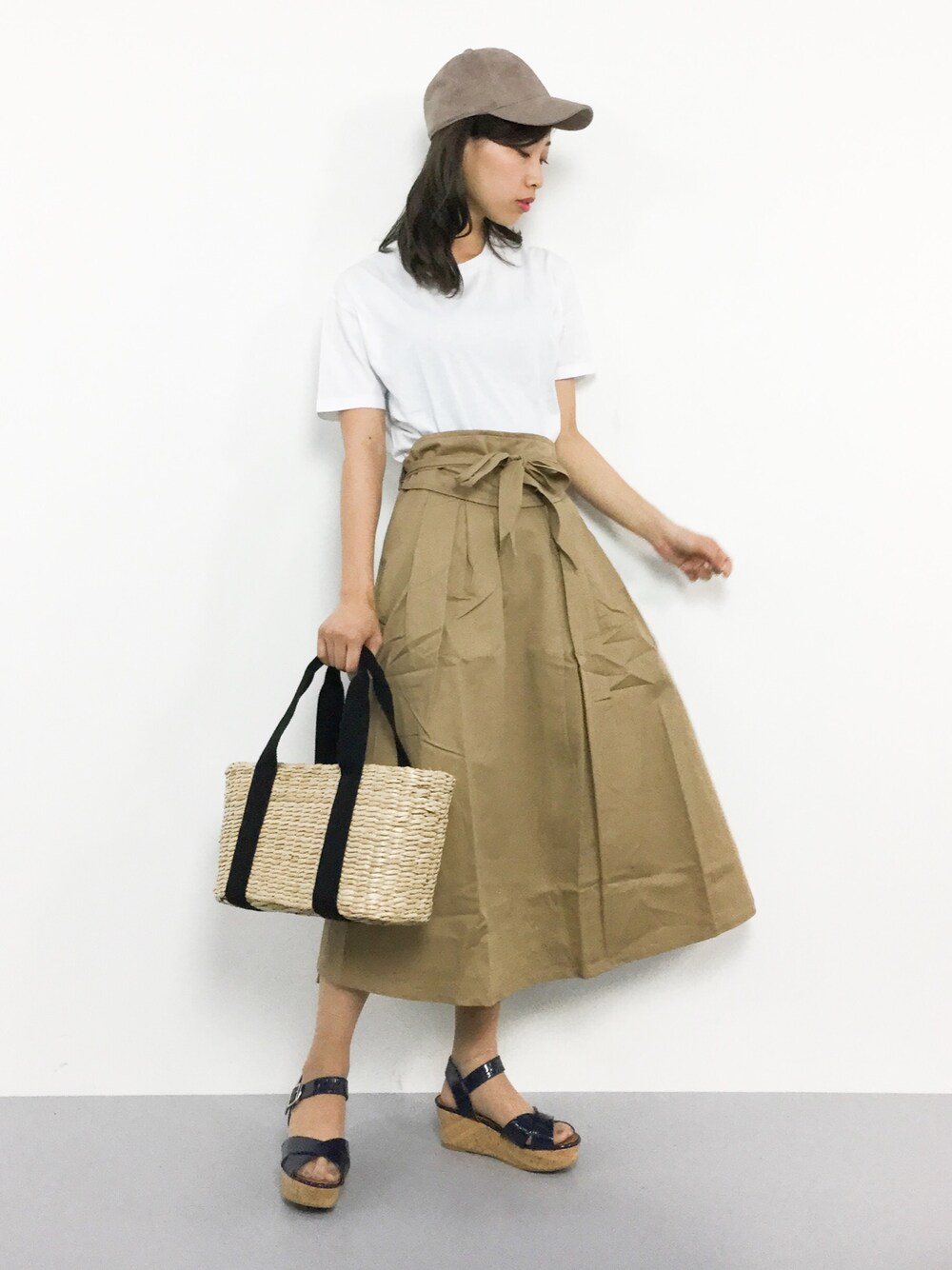 カジュアルコーデ◎ シンプルなTシャツは何にでも 合わせやすく何枚あっても うれしいアイテムです(^O^) スカートはハリ感があり、 足元の合わせ次第でカジュアルにも きれいめにも穿けますよ♪