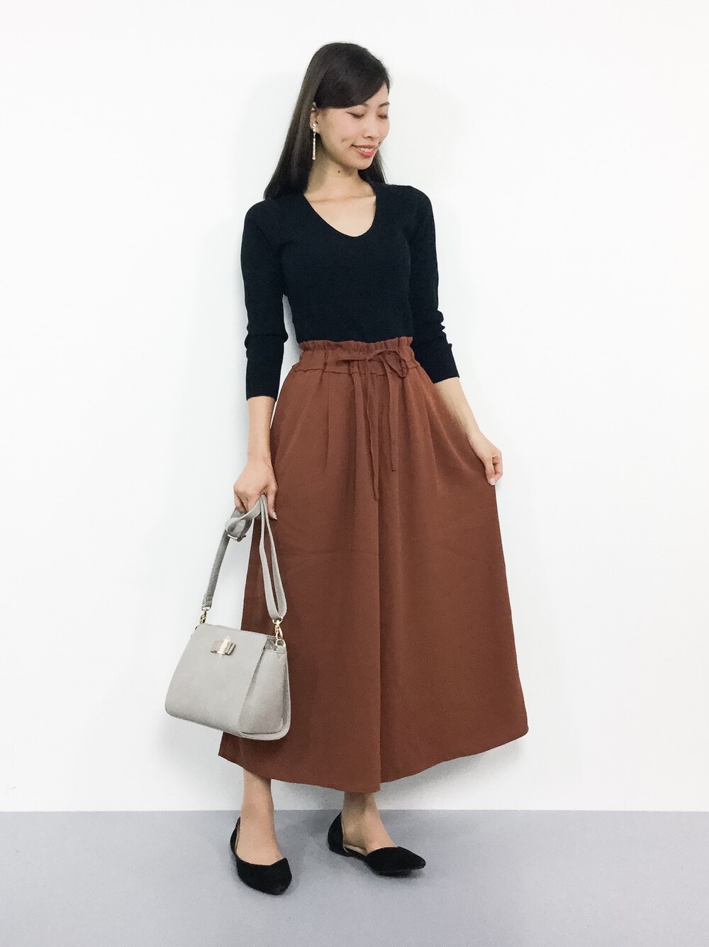 オトナ秋コーデ◎ オンオフに着回しが効くニットは 様々なシーンで活躍間違いなし♪ ふわっとした形のスカーチョは 下半身をさりげなくカバーしてくれます(^O^)