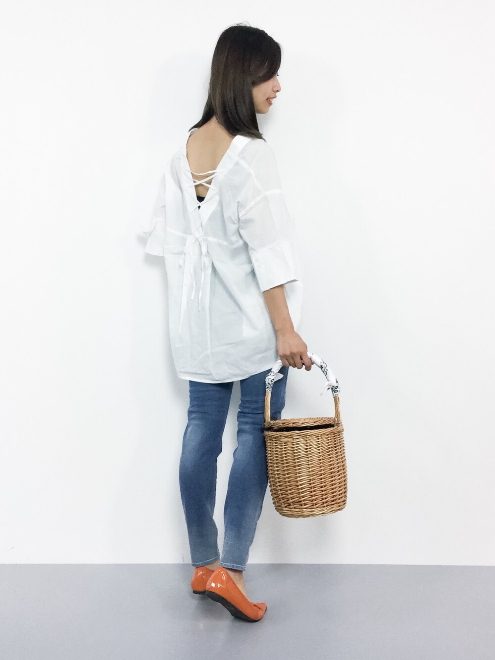 シンプルコーデ◎ トレンドのレースアップデザインのシャツは、 生地が柔らかく着心地◎です♩♩ デニムも柔らかい生地で伸縮性ばっちり♩ オススメの1本です(^_^)☆