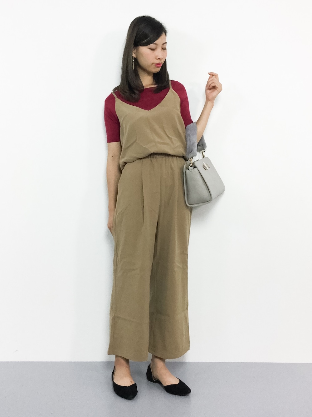 楽ちんコーデ◎ 程よくフィットするトップスは 伸縮性があるので着心地◎ 締め付け感のないオールインワンは 着ていてとってもラクチンです♪