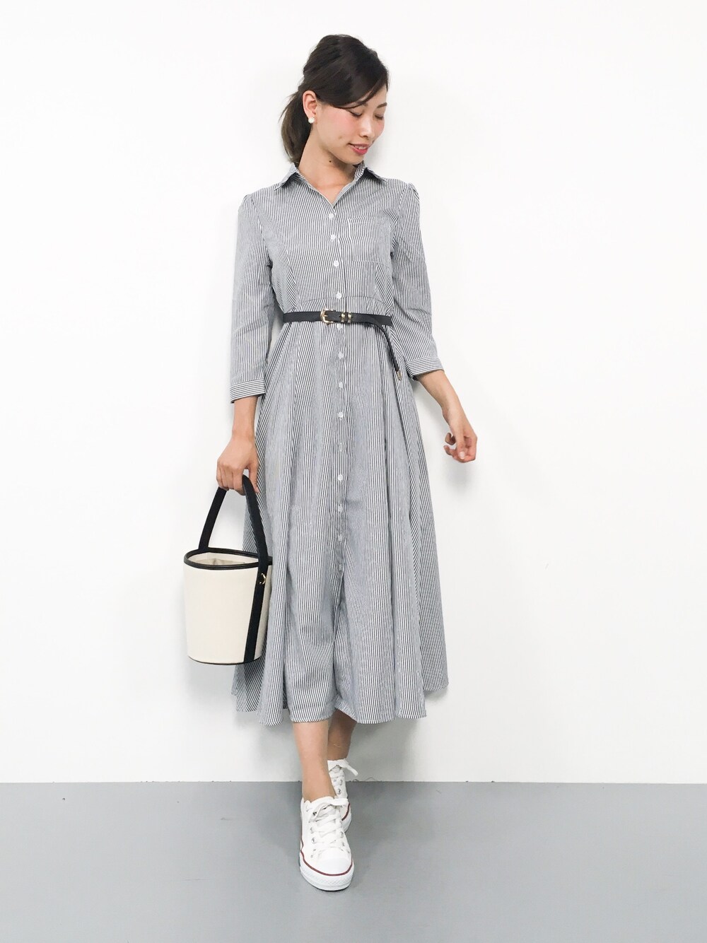 KIIのワンピース「ストライプシャツガウンワンピース」を使ったコーディネート