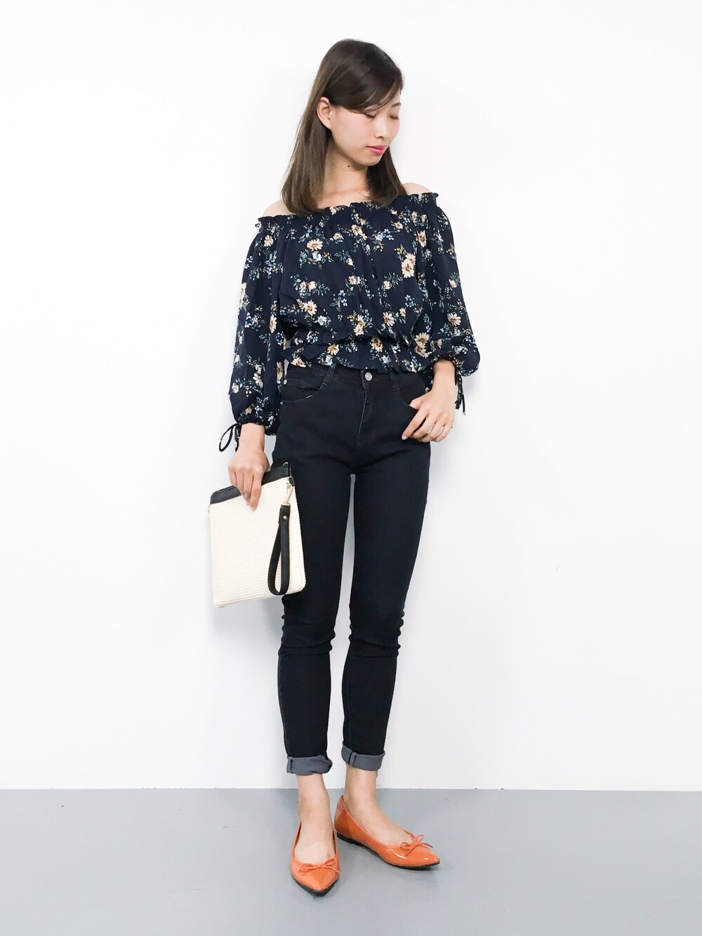 KIIのシャツ/ブラウス「ボタニカルフラワー柄オフショルブラウス」を使ったコーディネート