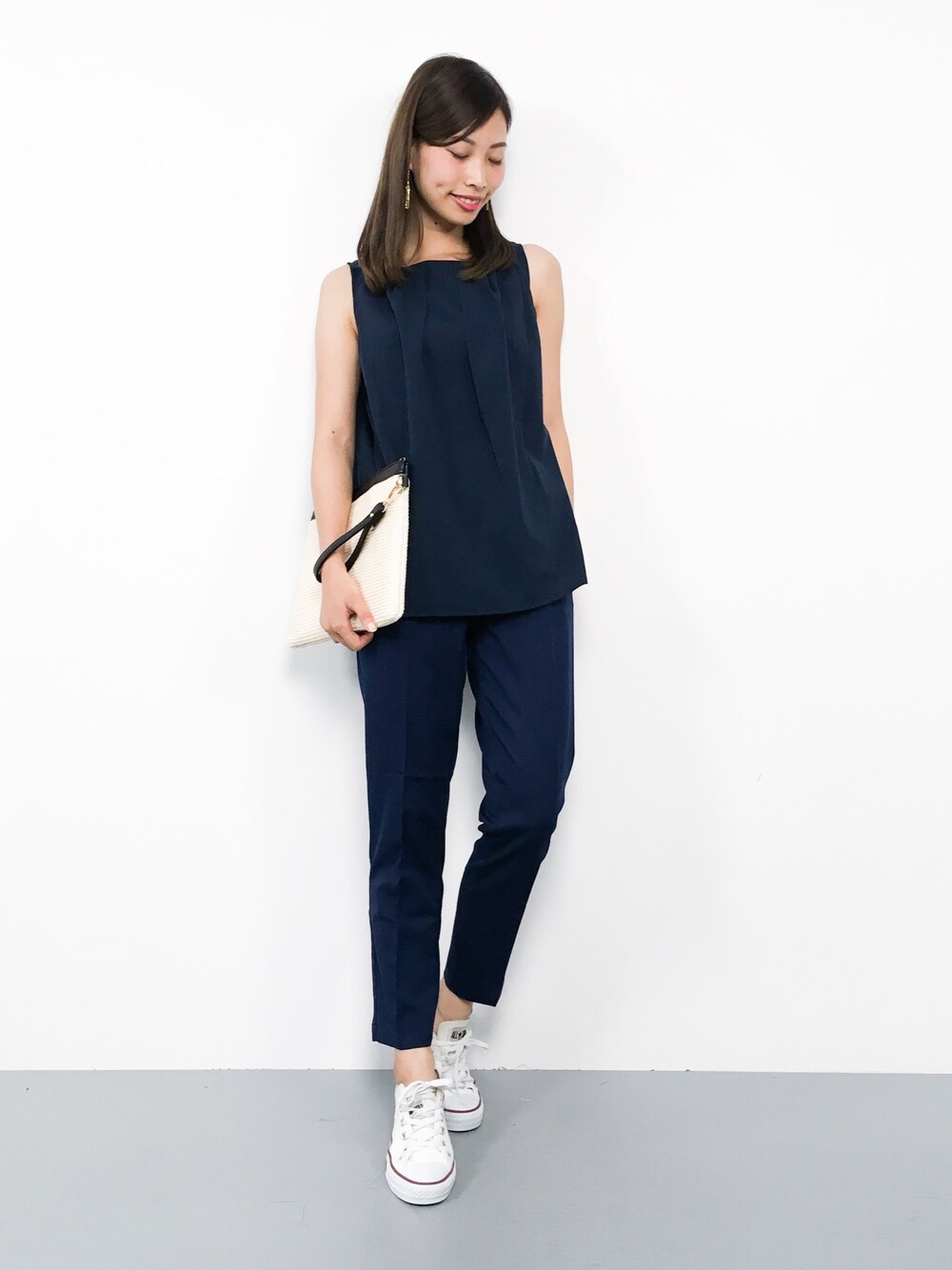 KIIのタンクトップ「薄手ポンチバックロングノースリーブトップス」を使ったコーディネート