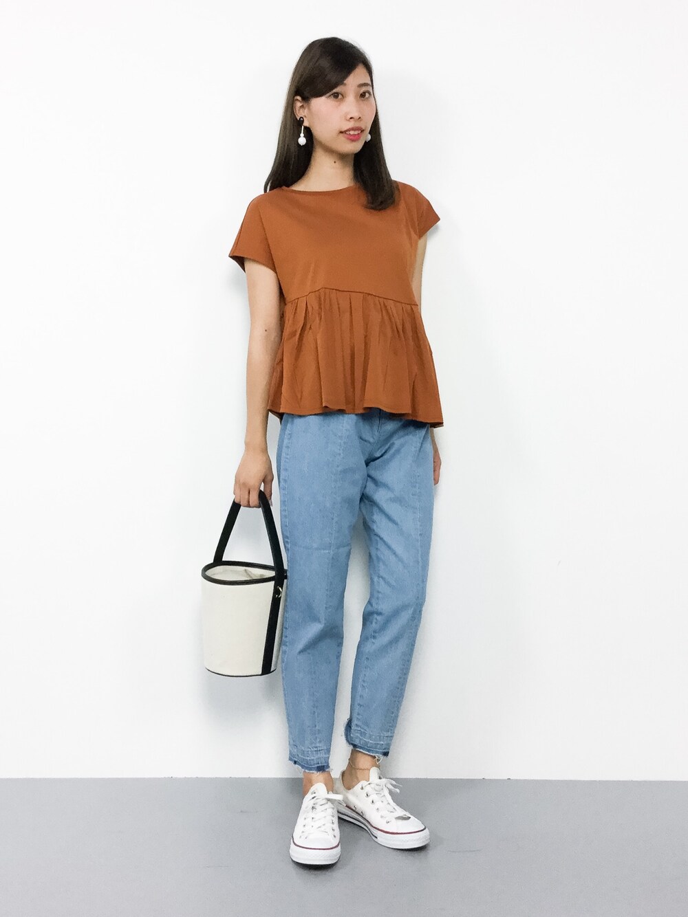 カジュアルラフコーデ◎ ゆったりしたシルエットのカットソーは ボトムスを選ばずに着ていただけます♪ 吸水速乾加工をしており、デザイン性能共に お値段以上のアイテムです(^_^)☆ デニムは裾に向かって細くなっているので シルエットがとてもきれいに見えます♪