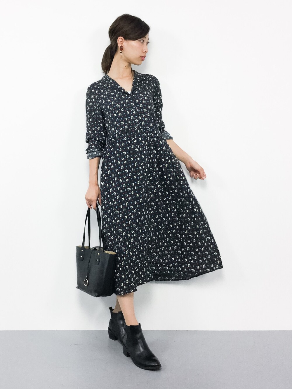 カジュアルガーリーコーデ◎ ガーリーな雰囲気の花柄ワンピースには サイドゴアブーツでカジュアルさをプラス♩ スニーカーを合わせてもかわいいです(^_^)☆ 締め付け感が無くラクな着心地ですよ(^O^)
