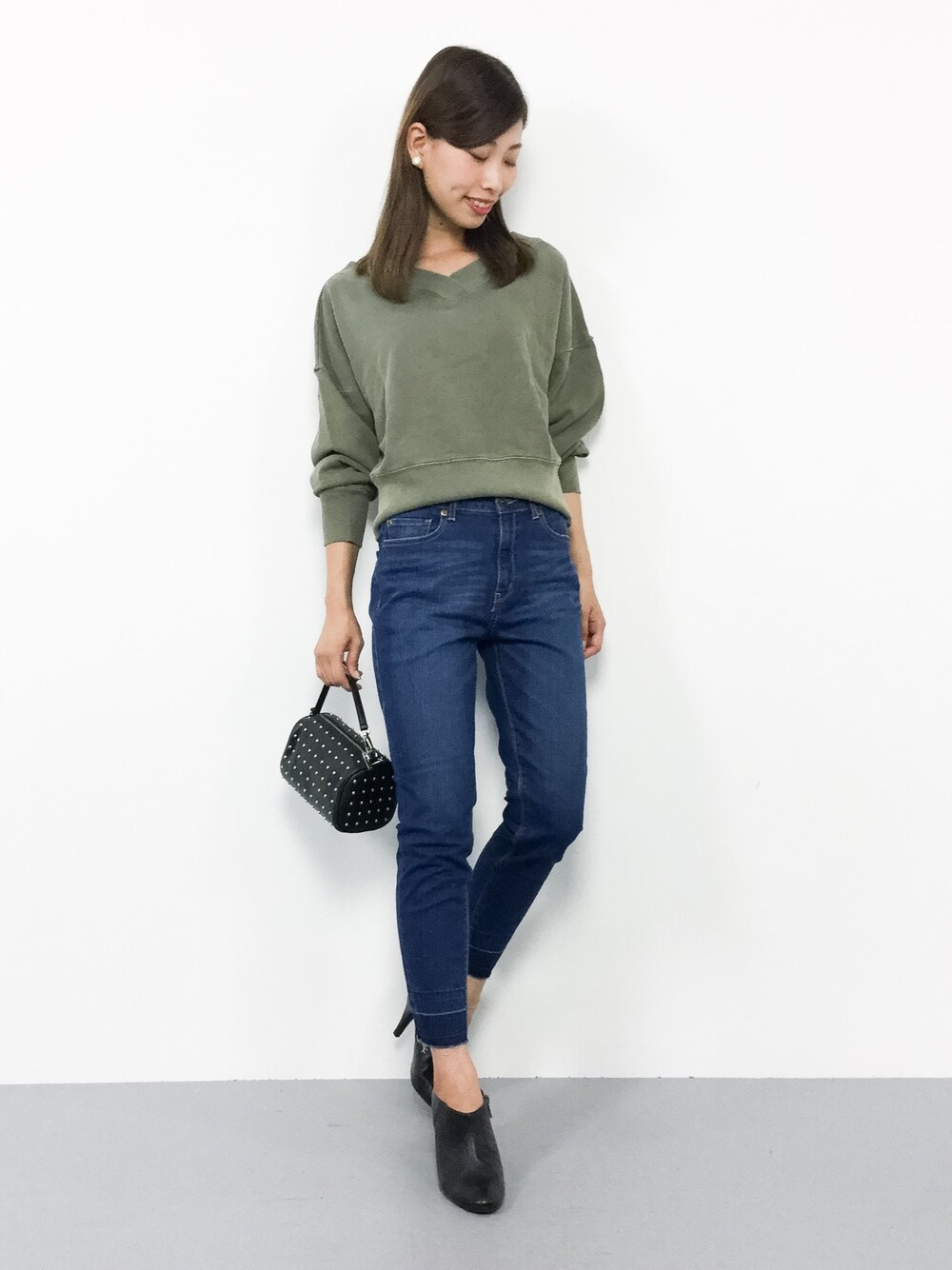 オトナカジュアルコーデ◎ トップスは程よい厚みの生地なので 春や秋の季節の変わり目にちょうど良く着られそうです♪ ゆったりしたシルエットなので 重ね着もしやすそうです(^_^)☆