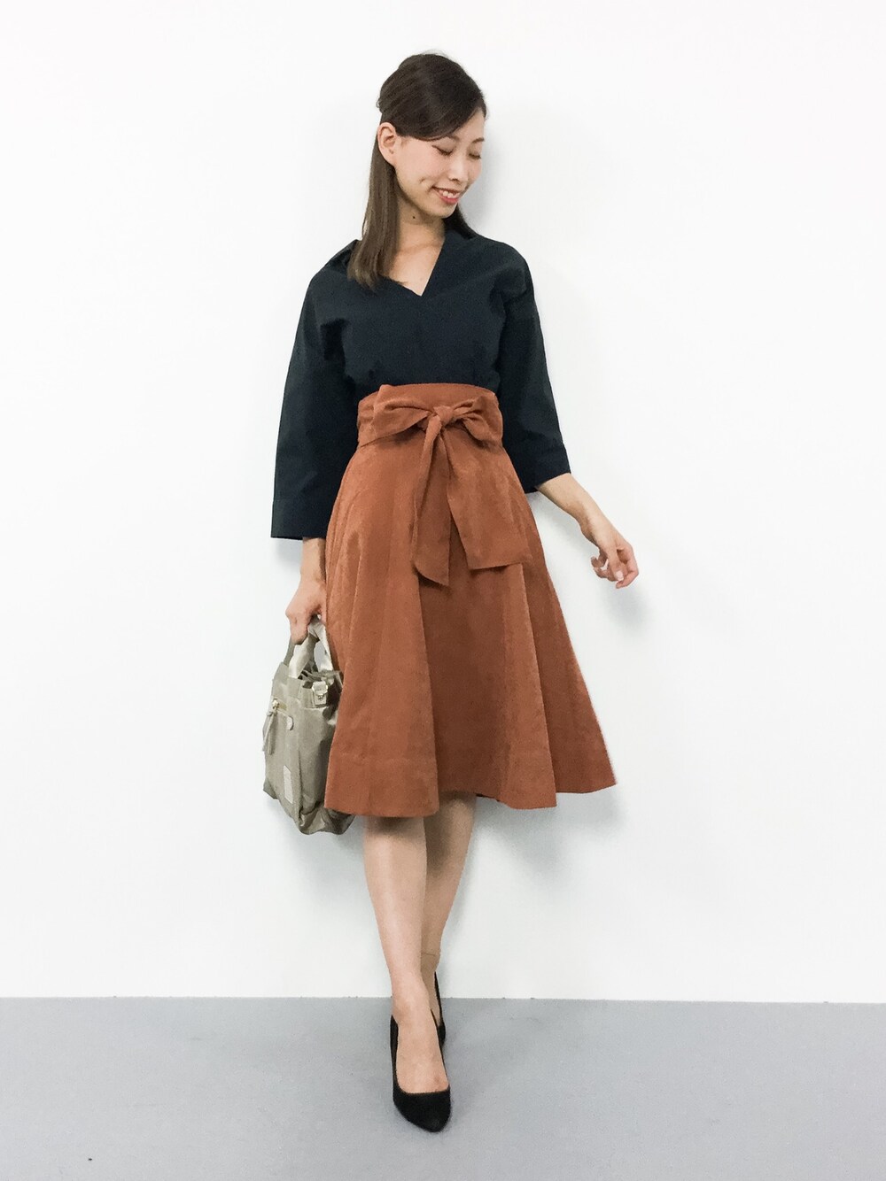 きれいめオトナコーデ◎ ゆったりデザインのシャツは デコルテがきれいに見える シルエットになっています♩ 只今ZOZOTOWNにてお値下げ中〜^^ フェイクスエードのスカートは 柔らかな生地で滑らかな肌触りです( ˆoˆ )/