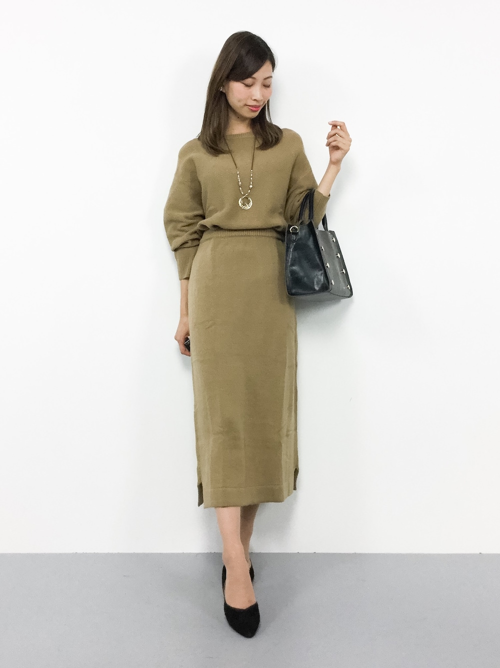 KIIのワンピース「12ゲージプルオーバー×7ゲージスカートセット」を使ったコーディネート