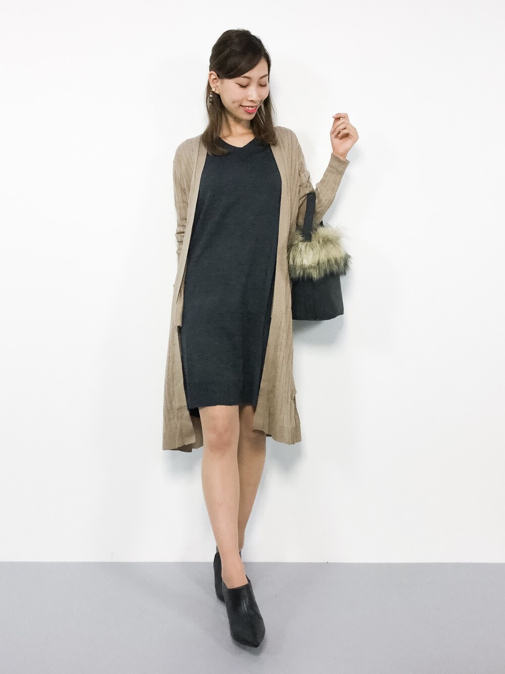 KIIのカーディガン/ボレロ「リブニットロングカーデ」を使ったコーディネート