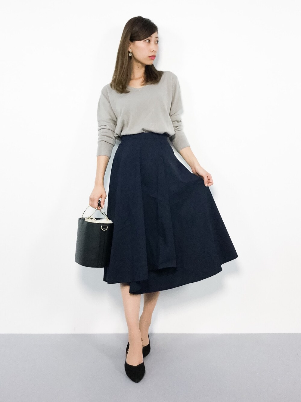 オトナカジュアルコーデ◎ デイリーに着回しが効くニットは 様々なシーンで活躍間違いなし♪ スカートは柔らかな生地で 幅広いシーズン使える優秀アイテム♪ 足元の合わせ次第でカジュアルにも きれいめにも穿けますよ(^O^)