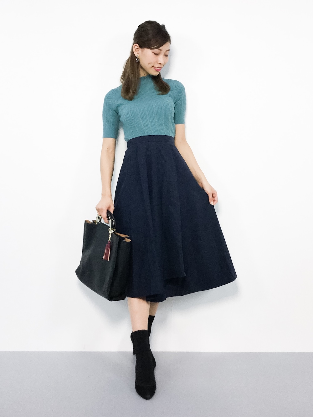オトナ女子コーデ◎ ハイネックのフリルが可愛い ニットは、柔らかな生地で とても着やすいです(^_^)☆ スカートは柔らかな生地で 幅広いシーズン使える優秀アイテム♪ 足元の合わせ次第でカジュアルにも きれいめにも穿けますよ(^O^)