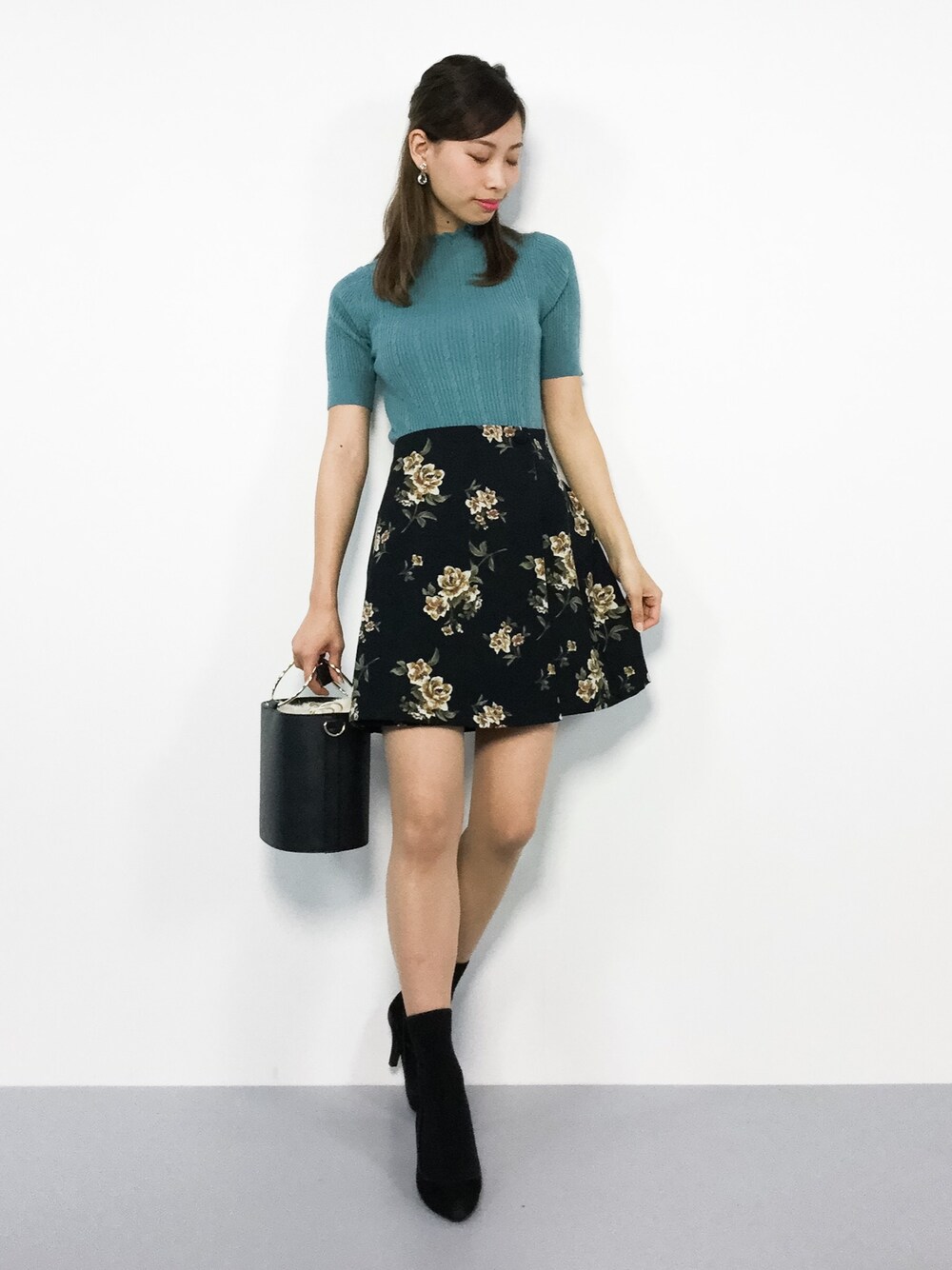 秋コーデ◎ ハイネックのフリルが可愛い トップスは、柔らかな生地で とても着やすいです☆ スカートは台形なので、 足がスッキリと見えるデザインです(^_^)
