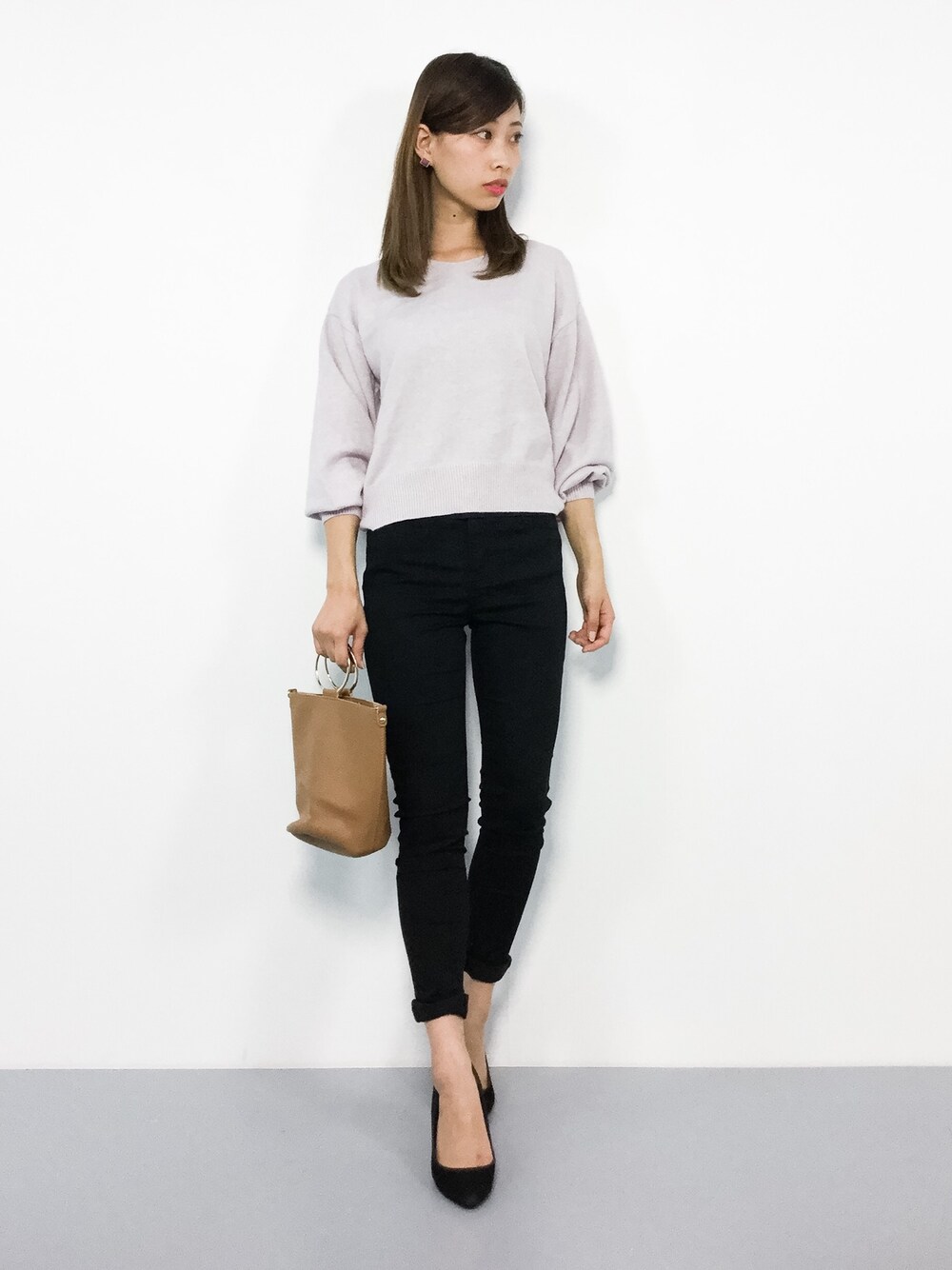 オトナフェミニンコーデ◎ ゆるっとした袖がポイント♩ フェミニンに着こなせます( ˆoˆ )/ シンプルなスキニーデニムは トップスを選ばずに穿けるので、 使いやすいアイテムです(^_^)☆ シーズン問わず穿けるので 何本あっても嬉しいですよね♩
