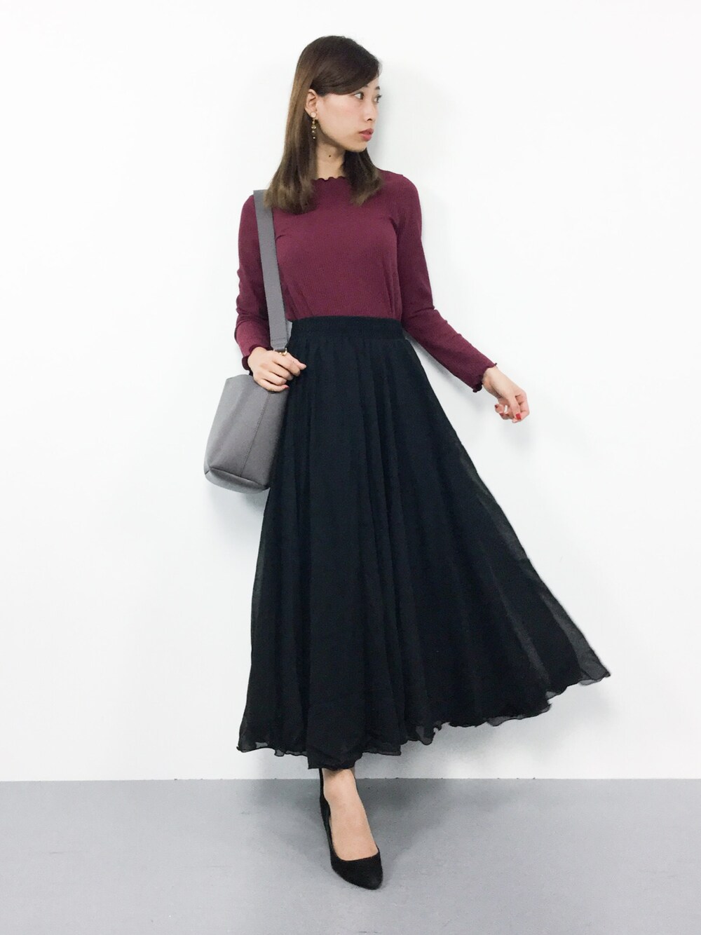 オトナ秋コーデ◎ デイリーに着回しが効くプルオーバーは 様々なシーンで活躍間違いなし♪ ふわっとしたシフォンスカートは 穿くだけで女性らしいアイテム♩ カジュアルにもガーリーにも着回せます(^_^)☆