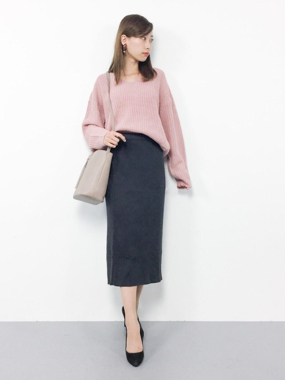 カジュアルガーリーコーデ◎ ゆったりシルエットのニットなので、 スッキリしたボトムスを合わせて バランス良くしました(^O^) タイトなシルエットですが、 伸縮性があるので穿きやすいです(^_^)☆