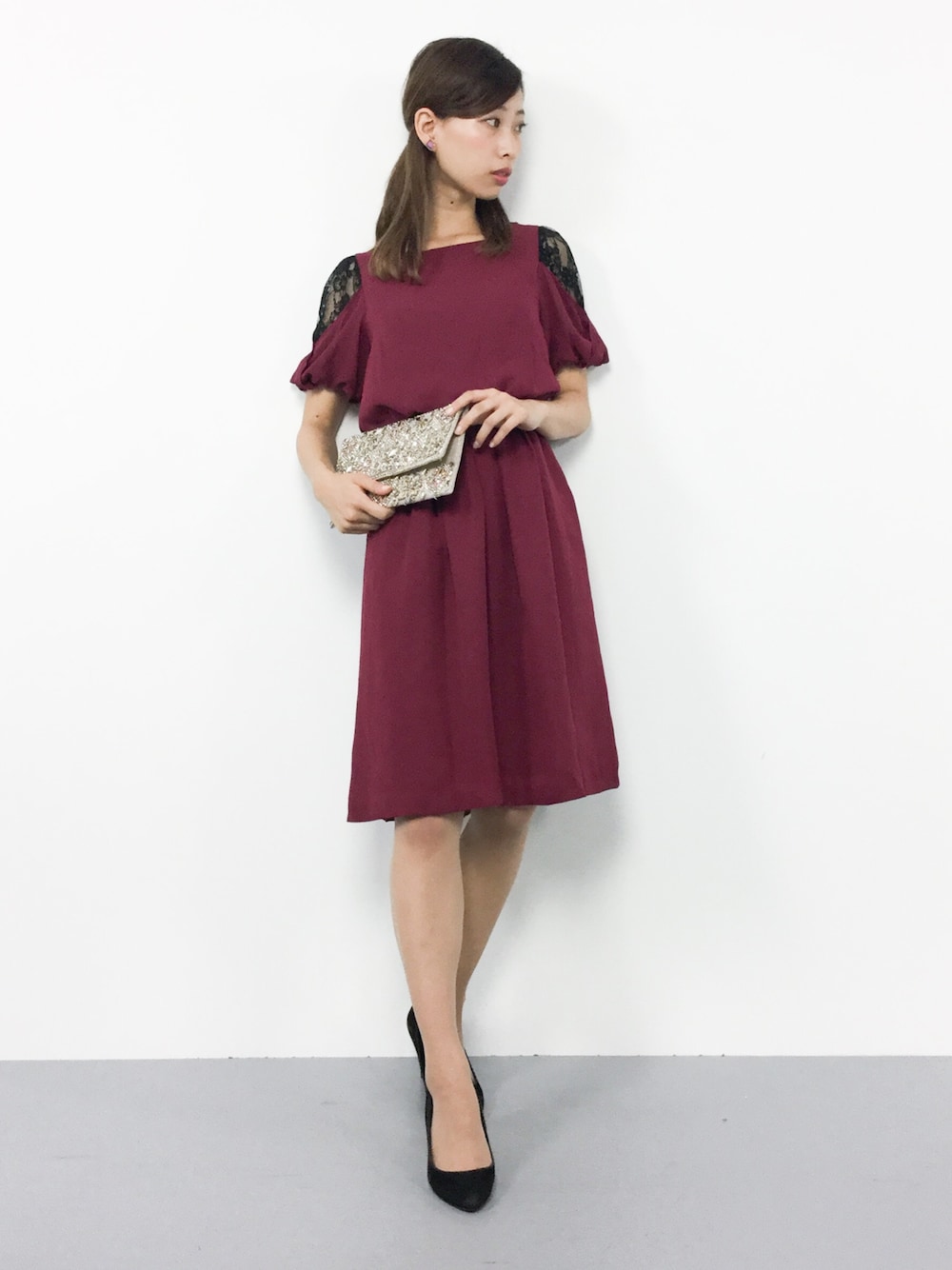 KIIのワンピース「パフスリーブレースワンピース」を使ったコーディネート