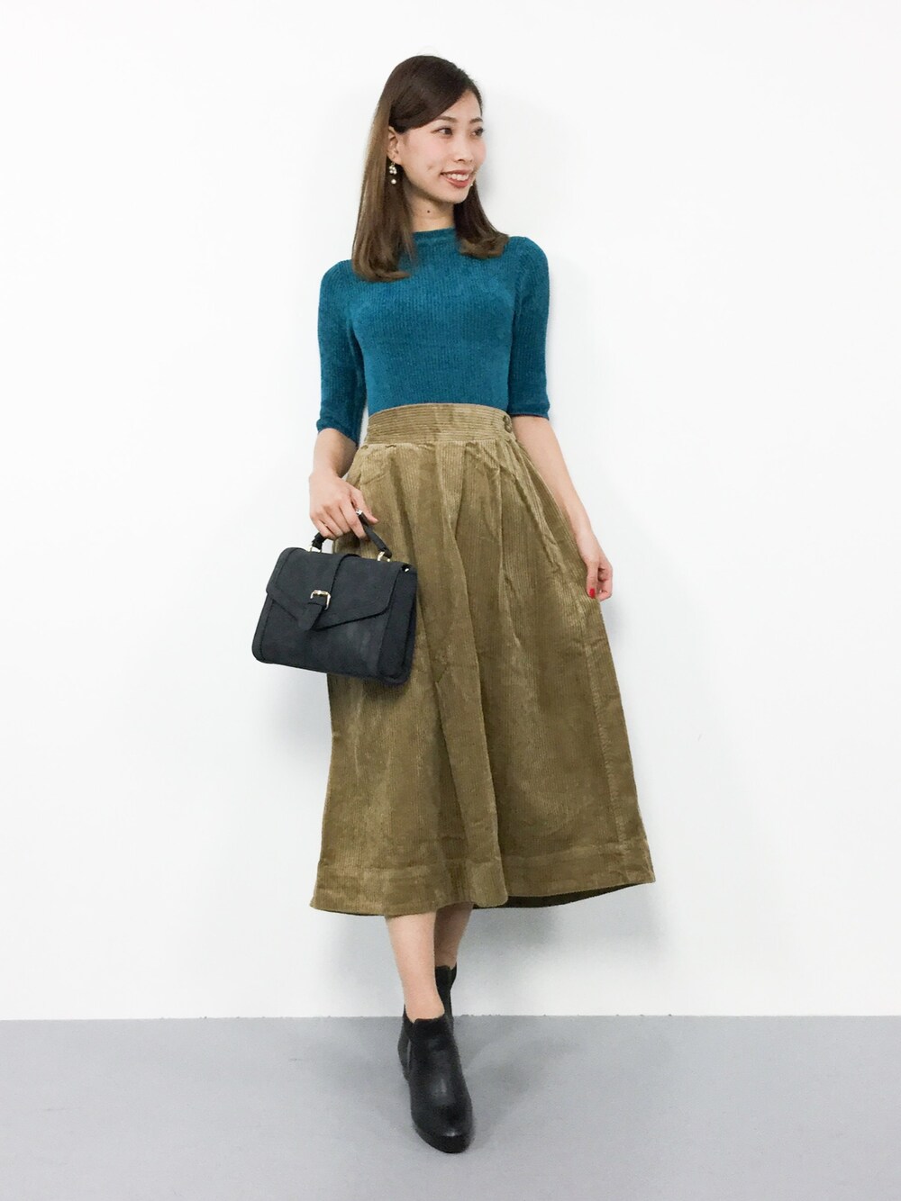 オトナシンプルコーデ◎ もちもちした生地のニットは柔らかく 着心地ばっちり(^_^)☆ コーデュロイ素材のスカートは穿くだけで 季節感のでるアイテム( ˆoˆ )/