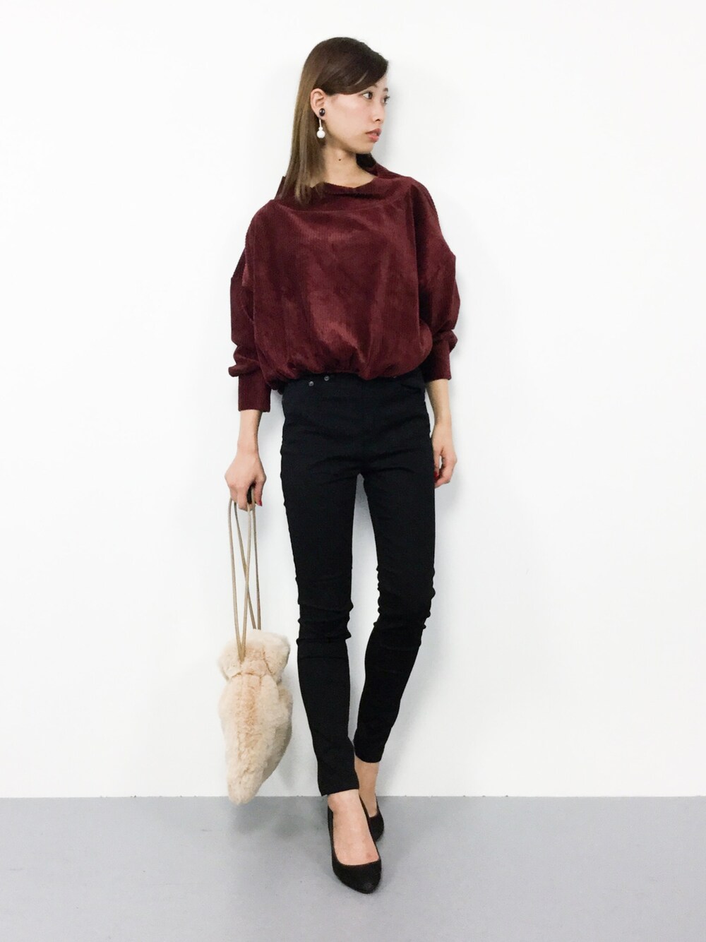 カジュアルコーデ◎ 起毛素材のプルオーバーは 肌触りがよく着心地もバッチリ♪ パンツはスッキリとしたシルエットですが、 伸縮性がしっかりとあり、 とても穿きやすいです(^_^)☆